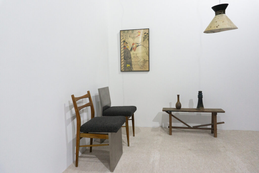 アンティークが持つ静かな存在感と、金属の研ぎ澄まされた質感。その二つの素材を組み合わせ、時代を超えて共存する新たな造形の探求。
